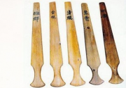 用于維系僧團中規矩和秩序的木板,形如寶劍,禪林稱為“香板”。其狀為長扁平形之木板,大小、形狀、重量不一,通常長約兩尺左右,上幅稍寬,約二寸左右,柄部圓形。 依使用目的之不同,而有諸多名稱。及因職責的差別,形式長短也有區別。香板,形如寶劍的木板,是禪堂中法力極其巨大的法寶。香板是用木料做的,類似古代的寶劍之形。它的長度和厚度,都有規定的尺碼。它是一種維護寺院清規、懲罰違犯律儀的械具。也兼有警策行道、