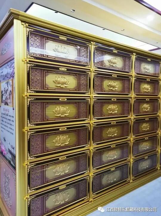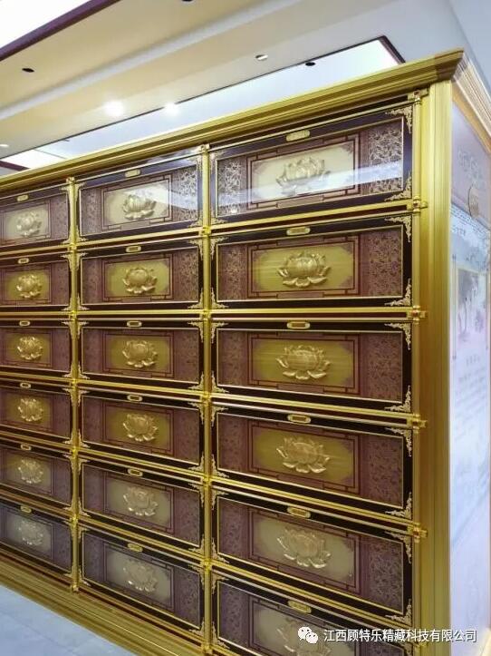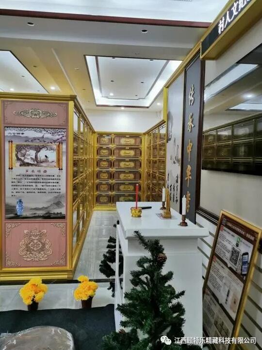 江西顧特樂精藏科技有限公司位于江西省樟樹市,創(chuàng)立于2009年,擁有注冊(cè)資金5099萬元,是一家集研發(fā)、制造、銷售、服務(wù)為一體的生產(chǎn)廠家。是國(guó)家“高新技術(shù)企業(yè)”、“國(guó)家知識(shí)產(chǎn)權(quán)標(biāo)桿企業(yè)”“兩化融合貫標(biāo)企業(yè)”,“顧特樂”品牌被評(píng)為“江西省名牌產(chǎn)品”,中國(guó)殯協(xié)理事會(huì)員,江西省殯協(xié)副會(huì)長(zhǎng)單位。主營(yíng):骨灰存放架、牌位架、佛龕架及相關(guān)配套產(chǎn)品。平均每年獲得上十份專利證書。自有“云端凈土”運(yùn)營(yíng)系統(tǒng),為廣大殯儀場(chǎng)所,提供專屬“互聯(lián)網(wǎng)+殯葬”服務(wù)。