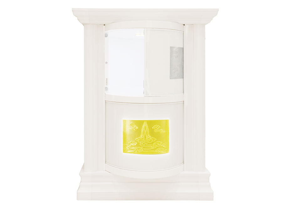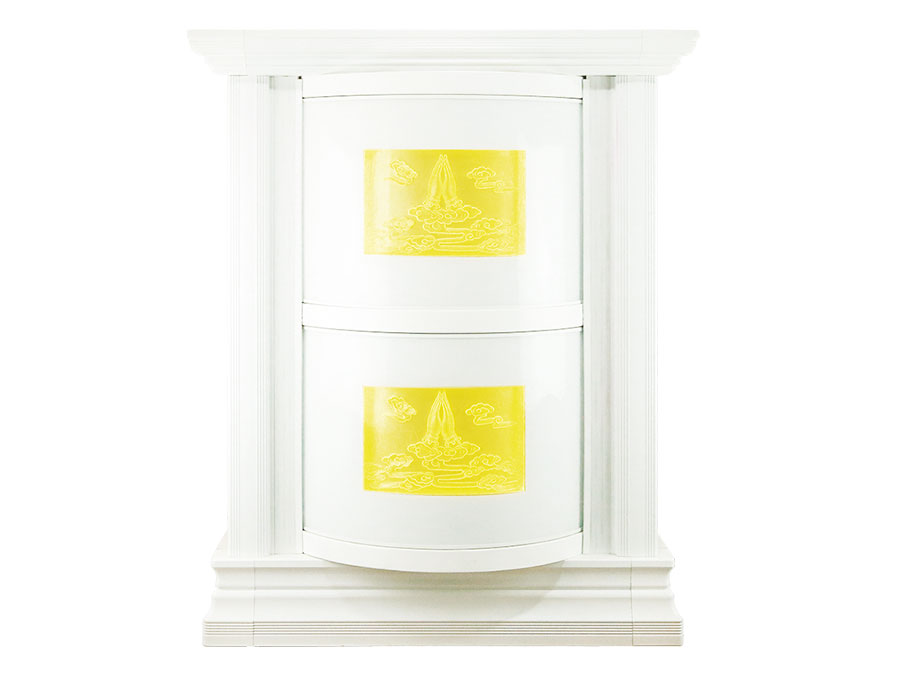 骨灰存放架是由箱體、面板、側板、頂蓋、底座、轉角、封板等構成,以及佛臺、掛落、佛 龕等相關配件構成。 箱體:分鍍鋅板、不銹鋼板、鋁板等五金板材箱體,鋁合金中空板扣接式箱體和純鋁壓鑄型 箱體。 面板:面板根據工藝不同、材料不同,風格各異、大不相同,既要起到美觀易分類作用,又 要起到防火、防塵、防潮、防蟲等作用。 側板:用于裝飾和保護箱體側面的作用,又可根據現場,對存放架分類的標識作用,一目了 然方便管理。 頂蓋、底座:都是穩固整列和整排箱體水平線,底座還起到一部分承重作用。 轉角、封板:箱體轉彎處和空隙處塑形的作用。 佛臺:由幾個骨灰存放架組成一個小型佛龕臺,用于放置佛像。 佛龕、掛落:整排存放架為了劃分區域,在每個區域靠墻上方,設置小型佛龕,為了美觀, 加上掛落。