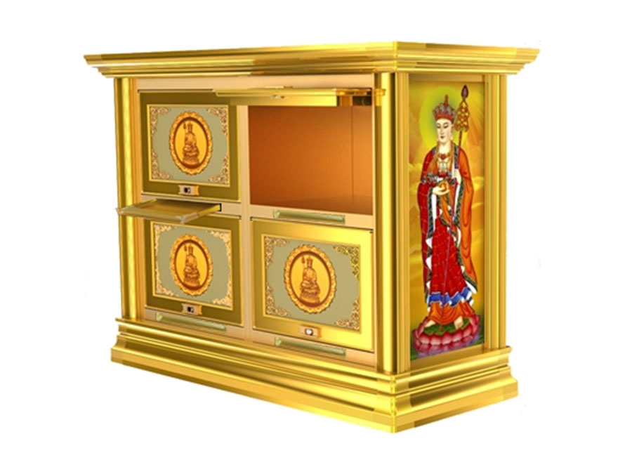 骨灰存放架是由箱體、面板、側(cè)板、頂蓋、底座、轉(zhuǎn)角、封板等構(gòu)成,以及佛臺、掛落、佛 龕等相關(guān)配件構(gòu)成。 箱體:分鍍鋅板、不銹鋼板、鋁板等五金板材箱體,鋁合金中空板扣接式箱體和純鋁壓鑄型 箱體。 面板:面板根據(jù)工藝不同、材料不同,風格各異、大不相同,既要起到美觀易分類作用,又 要起到防火、防塵、防潮、防蟲等作用。 側(cè)板:用于裝飾和保護箱體側(cè)面的作用,又可根據(jù)現(xiàn)場,對存放架分類的標識作用,一目了 然方便管理。 頂蓋、底座:都是穩(wěn)固整列和整排箱體水平線,底座還起到一部分承重作用。 轉(zhuǎn)角、封板:箱體轉(zhuǎn)彎處和空隙處塑形的作用。 佛臺:由幾個骨灰存放架組成一個小型佛龕臺,用于放置佛像。 佛龕、掛落:整排存放架為了劃分區(qū)域,在每個區(qū)域靠墻上方,設(shè)置小型佛龕,為了美觀, 加上掛落。