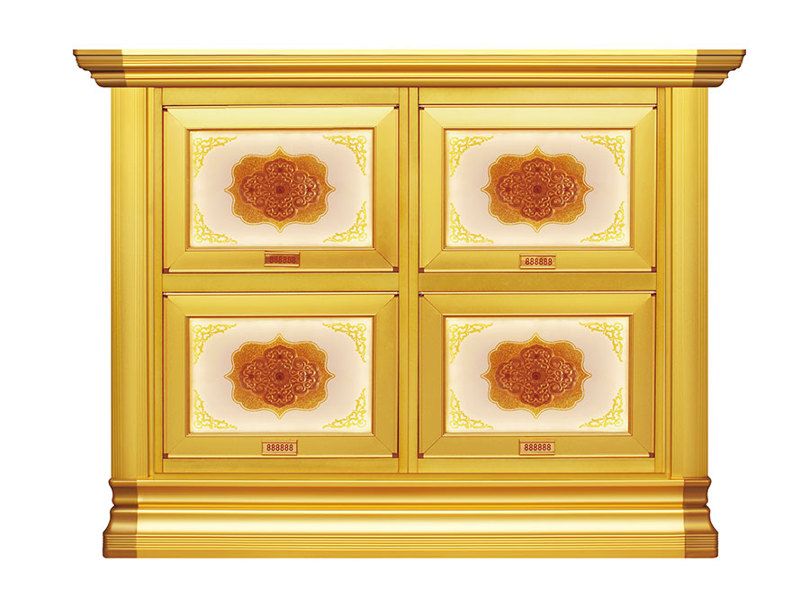 骨灰存放架是由箱體、面板、側(cè)板、頂蓋、底座、轉(zhuǎn)角、封板等構(gòu)成,以及佛臺、掛落、佛 龕等相關(guān)配件構(gòu)成。 箱體:分鍍鋅板、不銹鋼板、鋁板等五金板材箱體,鋁合金中空板扣接式箱體和純鋁壓鑄型 箱體。 面板:面板根據(jù)工藝不同、材料不同,風(fēng)格各異、大不相同,既要起到美觀易分類作用,又 要起到防火、防塵、防潮、防蟲等作用。 側(cè)板:用于裝飾和保護箱體側(cè)面的作用,又可根據(jù)現(xiàn)場,對存放架分類的標(biāo)識作用,一目了 然方便管理。 頂蓋、底座:都是穩(wěn)固整列和整排箱體水平線,底座還起到一部分承重作用。 轉(zhuǎn)角、封板:箱體轉(zhuǎn)彎處和空隙處塑形的作用。 佛臺:由幾個骨灰存放架組成一個小型佛龕臺,用于放置佛像。 佛龕、掛落:整排存放架為了劃分區(qū)域,在每個區(qū)域靠墻上方,設(shè)置小型佛龕,為了美觀, 加上掛落。