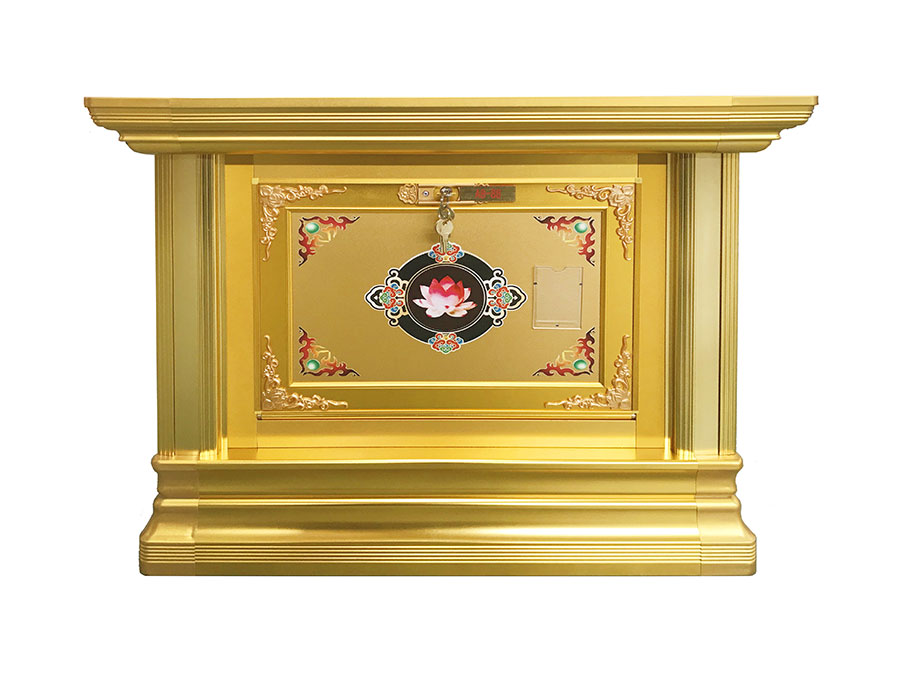 骨灰存放架是由箱體、面板、側板、頂蓋、底座、轉角、封板等構成,以及佛臺、掛落、佛 龕等相關配件構成。 箱體:分鍍鋅板、不銹鋼板、鋁板等五金板材箱體,鋁合金中空板扣接式箱體和純鋁壓鑄型 箱體。 面板:面板根據工藝不同、材料不同,風格各異、大不相同,既要起到美觀易分類作用,又 要起到防火、防塵、防潮、防蟲等作用。 側板:用于裝飾和保護箱體側面的作用,又可根據現場,對存放架分類的標識作用,一目了 然方便管理。 頂蓋、底座:都是穩固整列和整排箱體水平線,底座還起到一部分承重作用。 轉角、封板:箱體轉彎處和空隙處塑形的作用。 佛臺:由幾個骨灰存放架組成一個小型佛龕臺,用于放置佛像。 佛龕、掛落:整排存放架為了劃分區域,在每個區域靠墻上方,設置小型佛龕,為了美觀, 加上掛落。