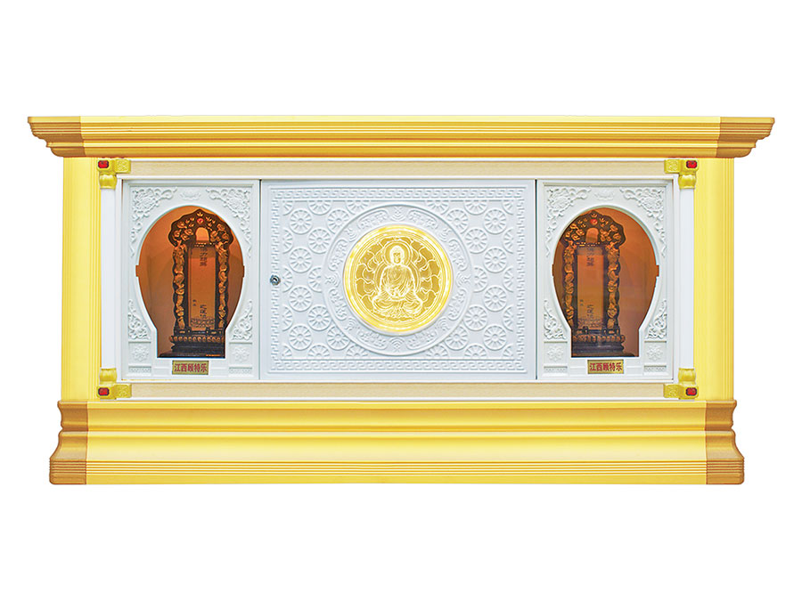 骨灰存放架是由箱體、面板、側板、頂蓋、底座、轉角、封板等構成,以及佛臺、掛落、佛 龕等相關配件構成。 箱體:分鍍鋅板、不銹鋼板、鋁板等五金板材箱體,鋁合金中空板扣接式箱體和純鋁壓鑄型 箱體。 面板:面板根據工藝不同、材料不同,風格各異、大不相同,既要起到美觀易分類作用,又 要起到防火、防塵、防潮、防蟲等作用。 側板:用于裝飾和保護箱體側面的作用,又可根據現場,對存放架分類的標識作用,一目了 然方便管理。 頂蓋、底座:都是穩固整列和整排箱體水平線,底座還起到一部分承重作用。 轉角、封板:箱體轉彎處和空隙處塑形的作用。 佛臺:由幾個骨灰存放架組成一個小型佛龕臺,用于放置佛像。 佛龕、掛落:整排存放架為了劃分區域,在每個區域靠墻上方,設置小型佛龕,為了美觀, 加上掛落。