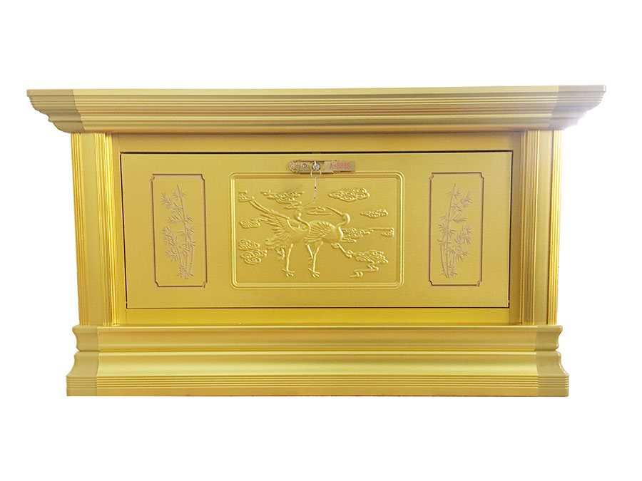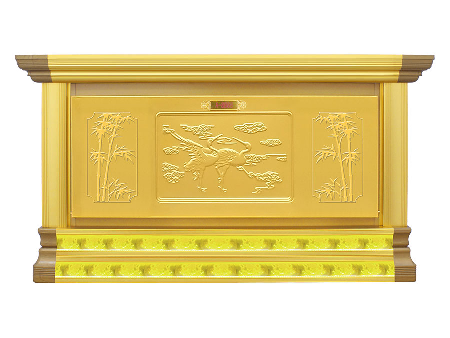 骨灰存放架是由箱體、面板、側(cè)板、頂蓋、底座、轉(zhuǎn)角、封板等構(gòu)成,以及佛臺、掛落、佛 龕等相關(guān)配件構(gòu)成。 箱體:分鍍鋅板、不銹鋼板、鋁板等五金板材箱體,鋁合金中空板扣接式箱體和純鋁壓鑄型 箱體。 面板:面板根據(jù)工藝不同、材料不同,風(fēng)格各異、大不相同,既要起到美觀易分類作用,又 要起到防火、防塵、防潮、防蟲等作用。 側(cè)板:用于裝飾和保護(hù)箱體側(cè)面的作用,又可根據(jù)現(xiàn)場,對存放架分類的標(biāo)識作用,一目了 然方便管理。 頂蓋、底座:都是穩(wěn)固整列和整排箱體水平線,底座還起到一部分承重作用。 轉(zhuǎn)角、封板:箱體轉(zhuǎn)彎處和空隙處塑形的作用。 佛臺:由幾個骨灰存放架組成一個小型佛龕臺,用于放置佛像。 佛龕、掛落:整排存放架為了劃分區(qū)域,在每個區(qū)域靠墻上方,設(shè)置小型佛龕,為了美觀, 加上掛落。