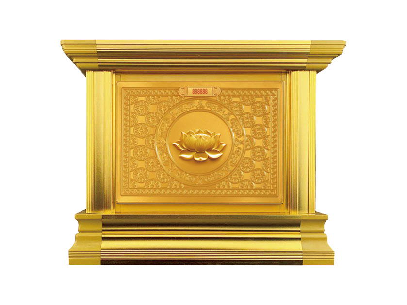 骨灰存放架是由箱體、面板、側板、頂蓋、底座、轉角、封板等構成,以及佛臺、掛落、佛 龕等相關配件構成。 箱體:分鍍鋅板、不銹鋼板、鋁板等五金板材箱體,鋁合金中空板扣接式箱體和純鋁壓鑄型 箱體。 面板:面板根據工藝不同、材料不同,風格各異、大不相同,既要起到美觀易分類作用,又 要起到防火、防塵、防潮、防蟲等作用。 側板:用于裝飾和保護箱體側面的作用,又可根據現場,對存放架分類的標識作用,一目了 然方便管理。 頂蓋、底座:都是穩固整列和整排箱體水平線,底座還起到一部分承重作用。 轉角、封板:箱體轉彎處和空隙處塑形的作用。 佛臺:由幾個骨灰存放架組成一個小型佛龕臺,用于放置佛像。 佛龕、掛落:整排存放架為了劃分區域,在每個區域靠墻上方,設置小型佛龕,為了美觀, 加上掛落。