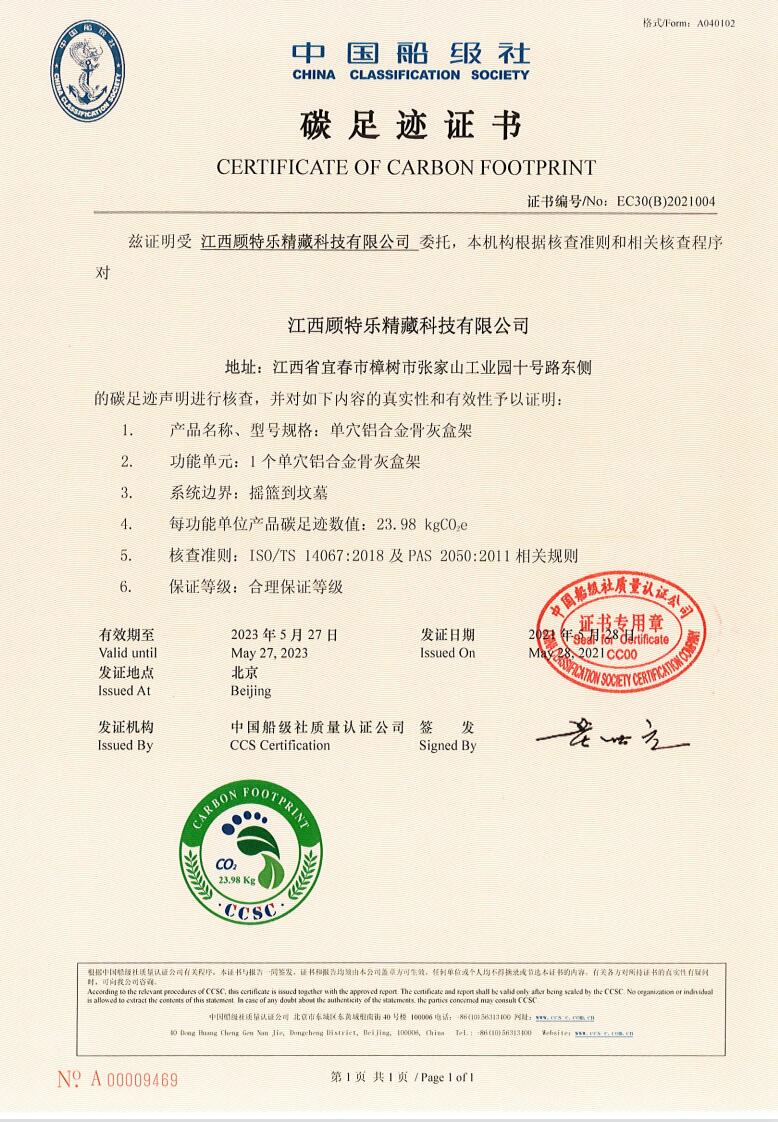 中國船級社碳足跡證書